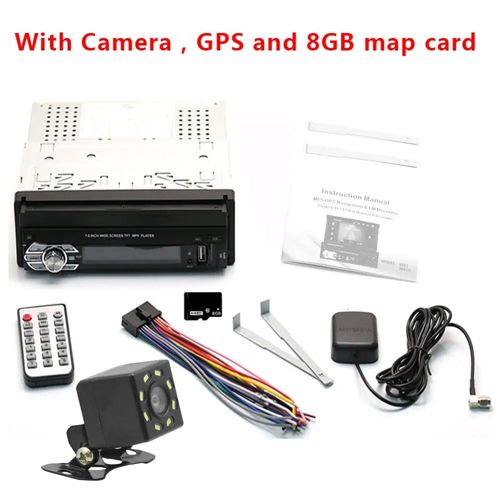 | 9601G 7 Car Stereo Audio Radio GPS Navigation Retractable Autoradio With BT DVD MP5 SD FM Bluetooth Music Player With Map Card |