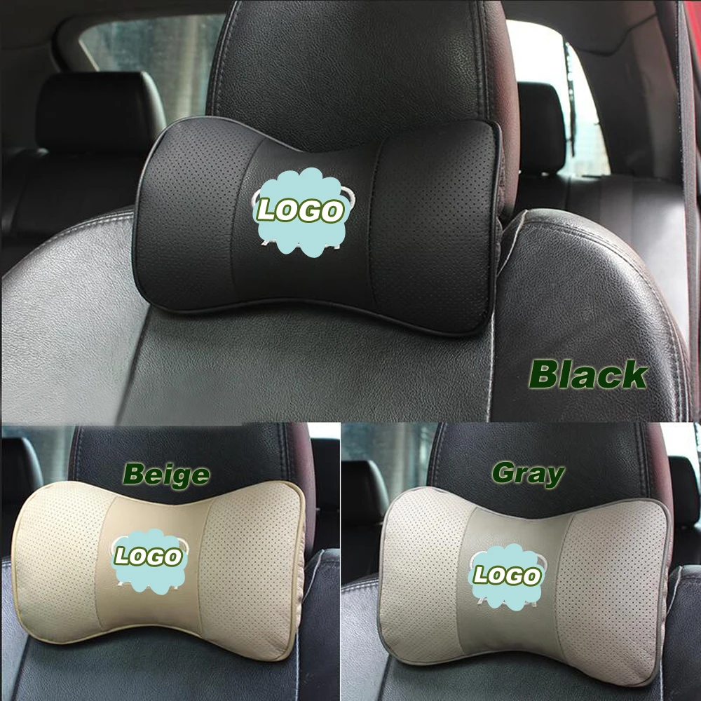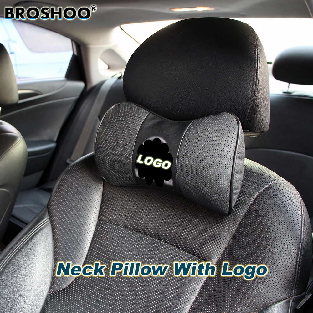 | BROSHOO Car Neck Pillow Auto Seat Headrest Genuine Leather Pillows With Car Brand Logo 2pcsLot Car-Styling Accessories |