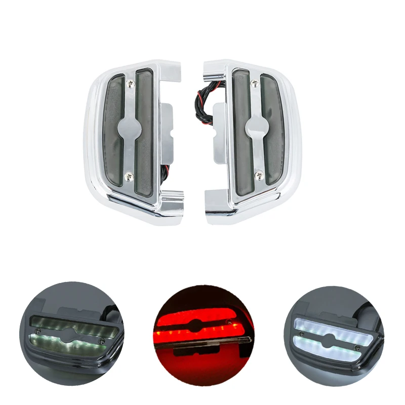 | Motorcycle LED Passenger Footboard Floorboard Cover For Harley Touring Electra Glide Road King Dyna Softail FLHR Smoke Clear Red |