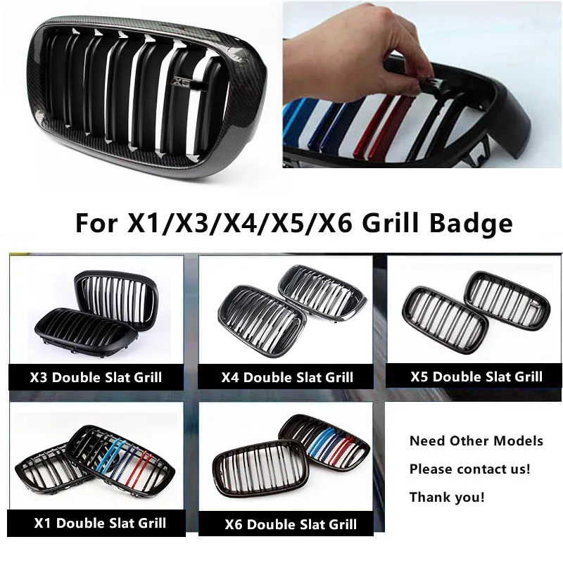 | Double Slat Front Grille Badge For M5 F10 F07 G30 E60 M3 F30 E90 M2 F22 F24 M4 F32 M6 F06 F1213 X5 F15 X6 F16 X3 X4F25F26 X1F48 |